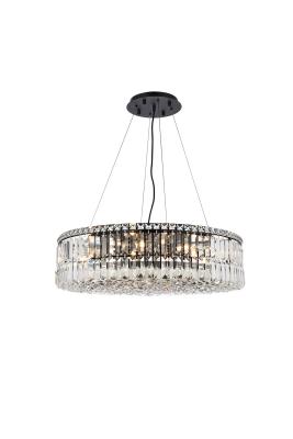 A riot of shapes and textures, Maxime collection hanging fixtures sparkle in a mosaic of crystal tiles. Square and rectangular precision-cut crystals form the flamboyant exterior while faceted crystal balls create a bubbled effect for light to shine through beneath. A mischievous asymmetrical hanging tube adds a touch of whimsy to this structured design. Available in a black or chrome finish with clear crystals, these lamps are a luxurious addition to a dining room, stairwell, foyer, or living room.